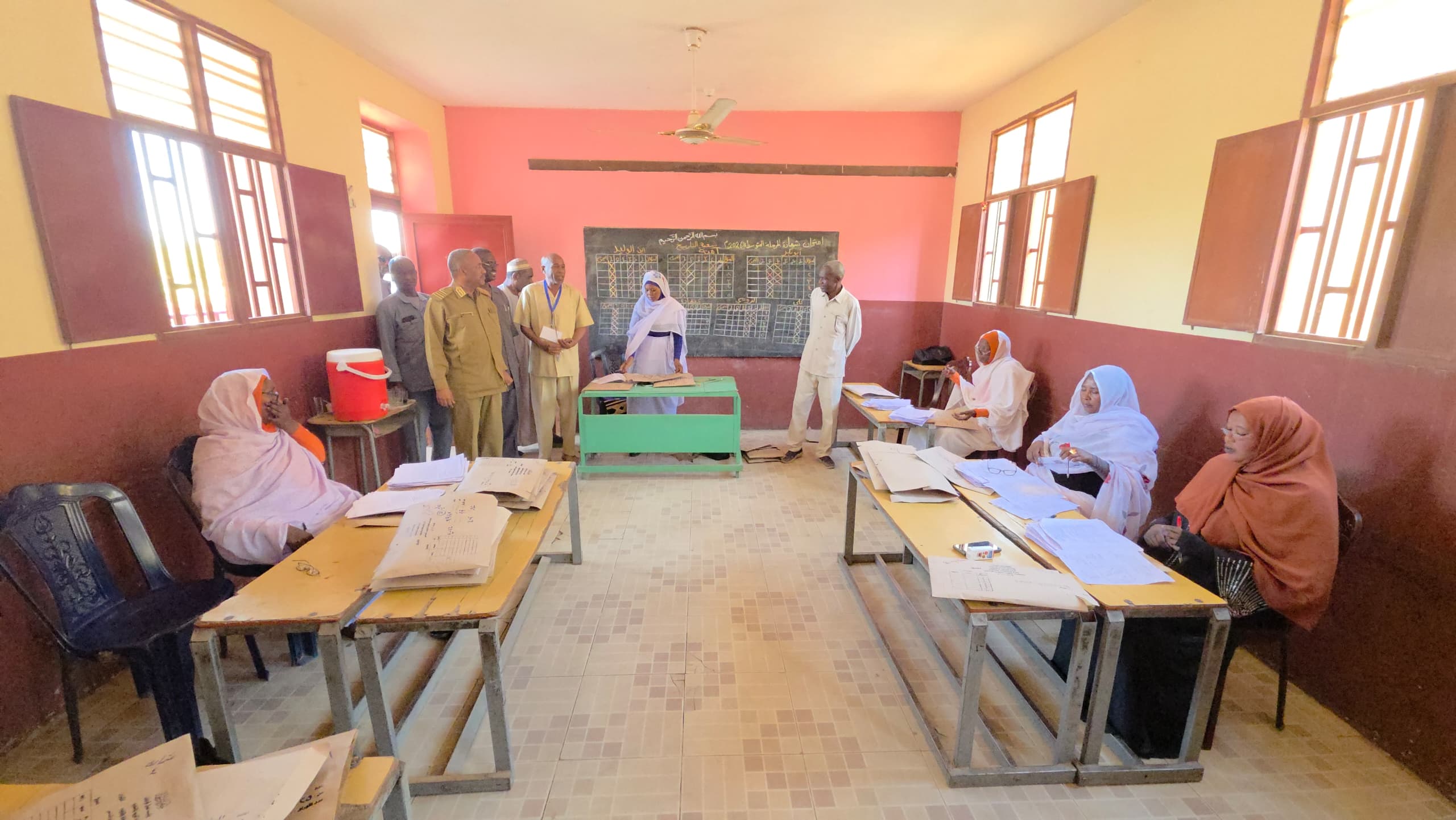 تفقد المدير التنفيذي لمحلية شيكان، الأستاذ عبد الناصر عبد الله محمد سير عمليات الكنترول وتصحيح امتحانات شهادتي المرحلة الابتدائية والمتوسطة بالولاية يرافقه مديري المرحلة الإبتدائية والمتوسطة بالمحلية